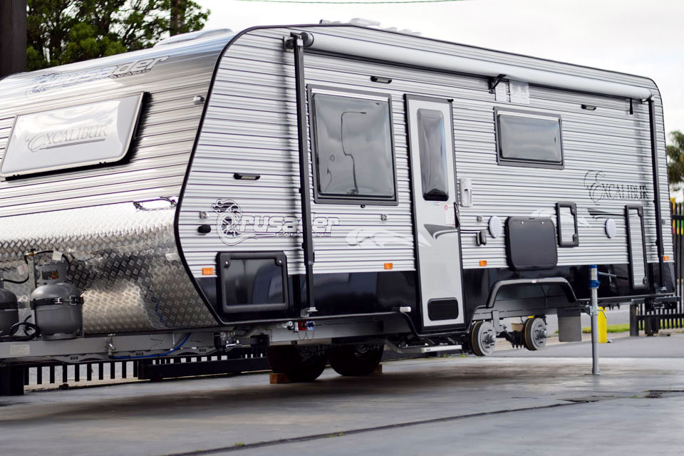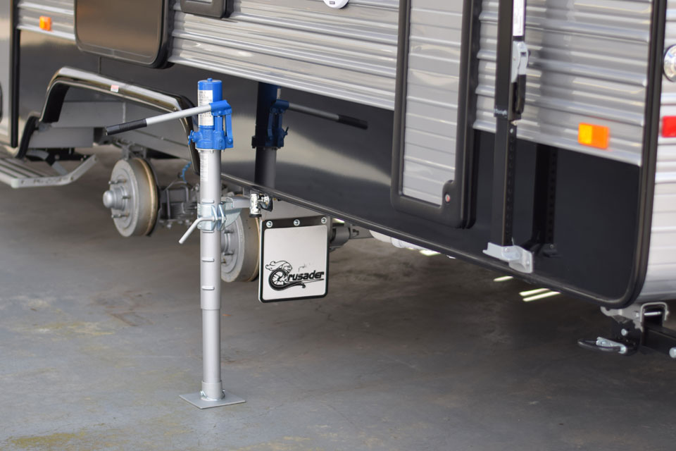 A hydraulic caravan jack designed to lift larger, heavier vans.